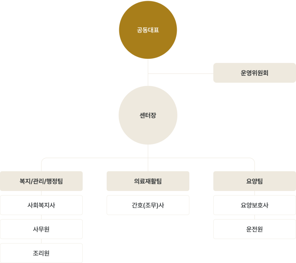 조직도 뉴라클데이케어센터만의특별한 관리로 어르신들의 편안한 생활을 제공합니다. 뉴라클데이케어센터만의특별한 관리로 어르신들의편안한 생활을 제공합니다. 상담문의 Tel. 02-2138-3266