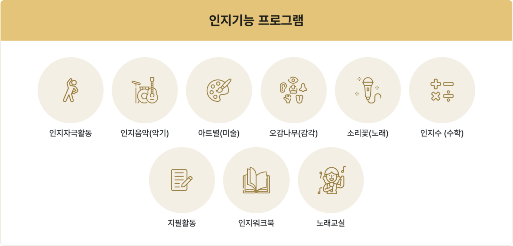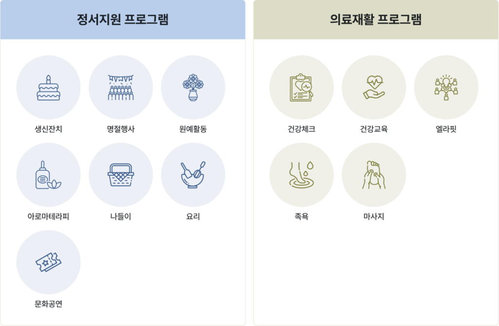 프로그램 안내 뉴라클데이케어센터는어르신의 신체, 인지 기능을 유지 및 증진하고,기능회복훈련으로 일상생활을 유지하며건강하고 편안한 노후를 영위할 수 있도록 합니다. 뉴라클데이케어센터만의특별한 관리로 어르신들의 편안한 생활을 제공합니다. 뉴라클데이케어센터만의특별한 관리로 어르신들의편안한 생활을 제공합니다. 상담문의 Tel. 02-2138-3266
